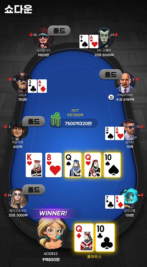 ์ •๋ง ์ข‹์€ ํ•ธ๋“œ๋ฅผ ๊ฐ€์ง€๊ณ  ํŒŸ์„ ์Šน๋ฆฌํ•œ๋‹ค.